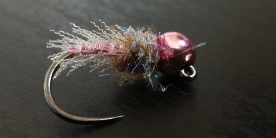 Den Tungsten-Kopf verwende ich in den Farben Pink, Schwarz, Silber und Orange, den Körper dann in der gleichen Farbe wie die Tungsten-Perle und die Organza-Rippung in weiss oder creme.